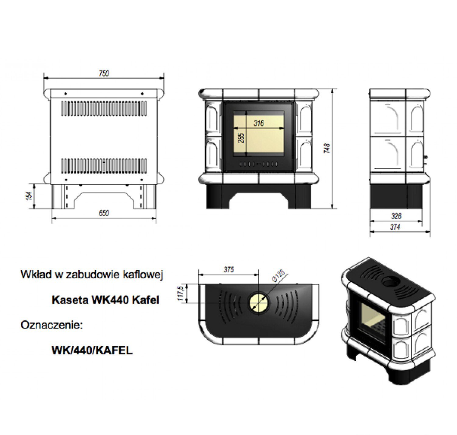 Кафельная печь Kratki WK440 изготовлена в Польше из котельной стали 4 мм, вермикулита и плитки. Печка WK440 предназначена для отопления небольшого помещения, номинальная мощность печи составляет 5 кВт, что достаточно для 16–50 квадратов. Дымовое место расположено сверху, что позволяет подключить печь по классической схеме.