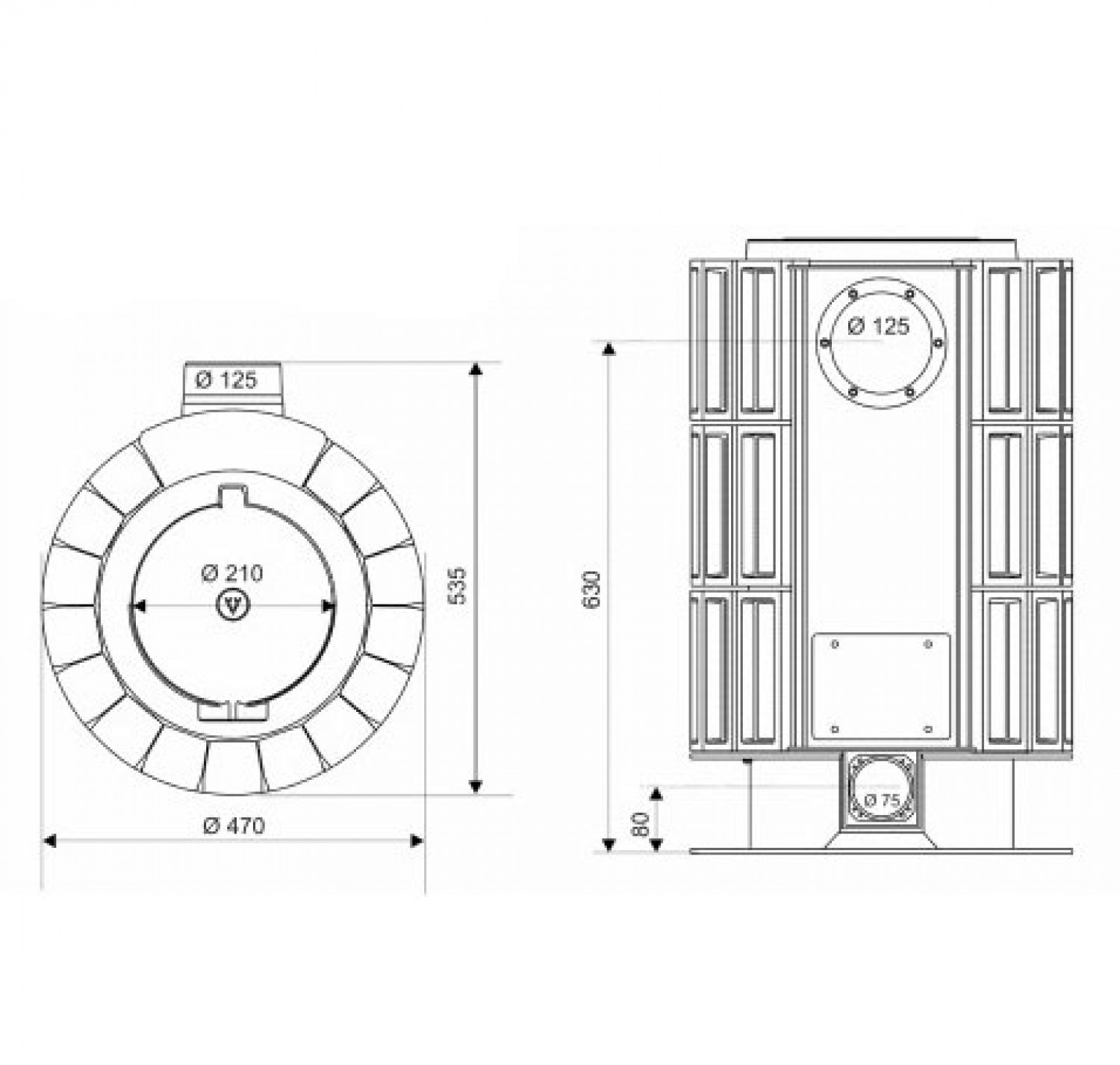 Герметичная отопительная печь с подключением воздуха с улицы. Облицовка печи из аккумулирующего материала для увеличения теплоотдачи. Есть возможность подогрева блюд на верхней плите. Удобное управление работой топки (1 ручка регулирует подачу всех воздушных потоков).
