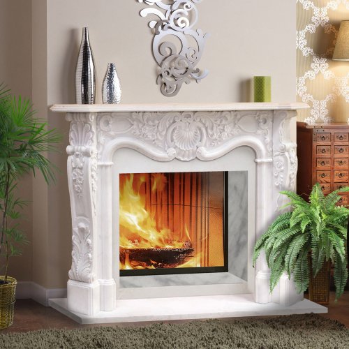 Этот великолепный камин в стиле Людовика XV был изготовлен в 19м веке из каррарского мрамора. Скульптурное оформление камина выполнено в стиле «трёх раковин». Боковины декорированы волютами в верхней и нижней частях.