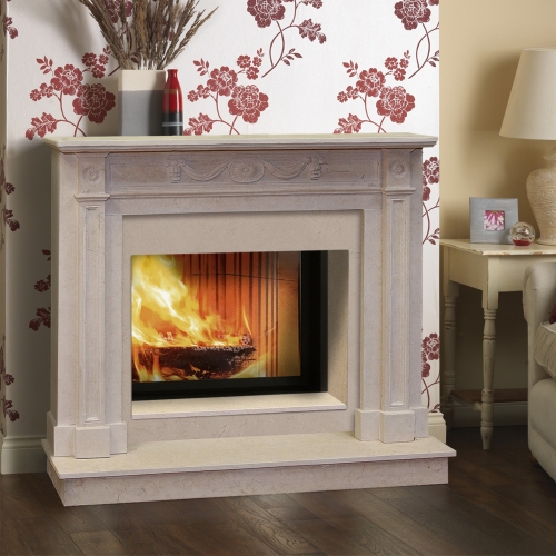 - Подходящие топки: с прямым стеклом с подъемом или боковым открыванием дверцы, открытая топка, электроочаг. В комплект входят плиты для адаптации под топку