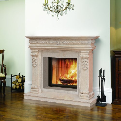 - Подходящие топки: с прямым стеклом с подъемом или боковым открыванием дверцы, открытая топка, электроочаг. В комплект входят плиты для адаптации под топку