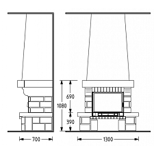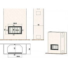 Топка с боковым стеклом, вертикальное и боковое открытие, футеровка - шамот, рамка дверцы латунная.