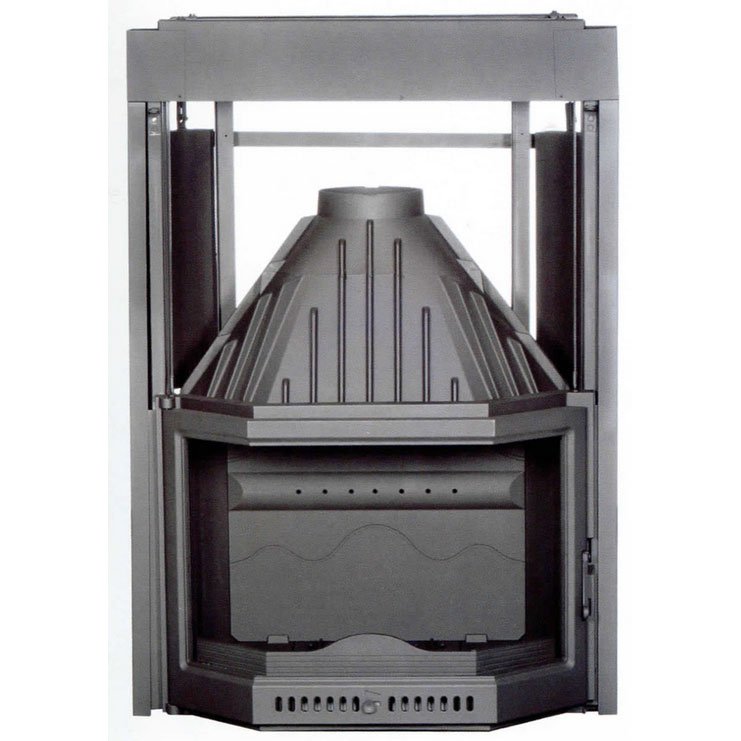 Большая чугунная топка Ferlux 825 гильотинного типа с цельным призматическим стеклом.