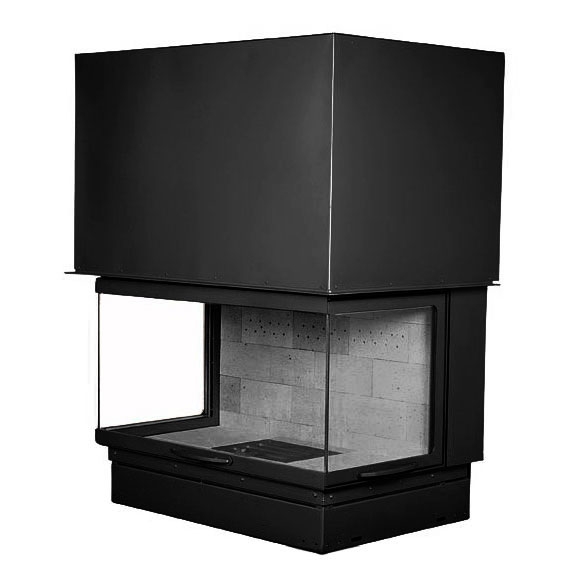 Каминная трехсторонняя топка с очагом, облицованным специальным огнеупорным камнем. Цвет черный, кирпичи - серого цвета.