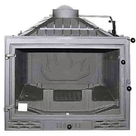 Чугунная топка серии «bloque» с плоским стеклом, ограничитель дров, оригинальный дизайн внутренней части, удобный зольник.