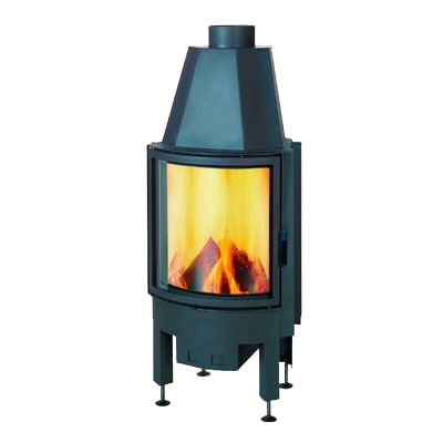 Топка с полукруглым стеклом. Черного цвета. Выполнена из стали и чугуна.