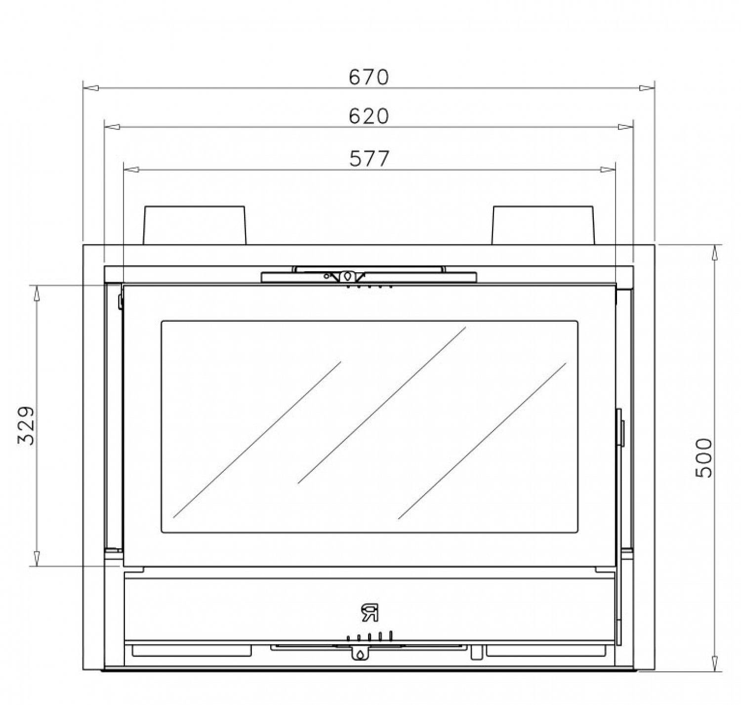 Стальной вертикальный инсерт с первичным и вторичным регистром подачи воздуха, благодаря чему перед попаданием в очаг воздух сначала прогревается.