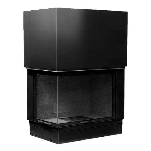 Топка двусторонняя угловая с левым боковым стеклом. Цвет топки - черный, кирпичи - черного цвета.
