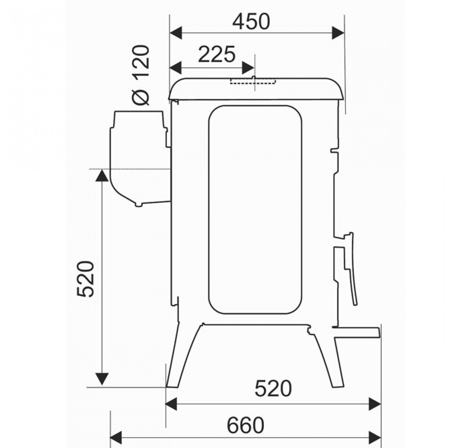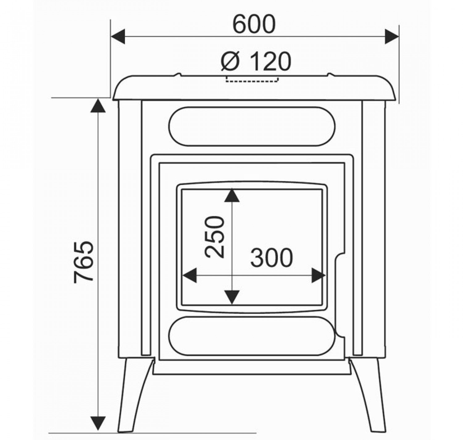 - Диаметр дымохода, (мм) 120 мм.