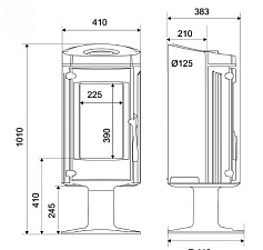 Печь-камин Keddy K-815 серого цвета, изготовлена из чугуна. Большое центральное и 2 боковых стекла.