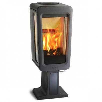 Печь-камин Keddy K-815 изготовлена из чугуна. Большое центральное и 2 боковых стекла.