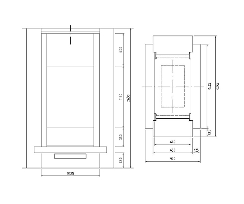 Цена указана за камин в стандартном исполнении (см. чертеж).