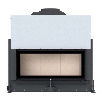 Каминная топка с прямым стеклом. Уменьшенная монтажная глубина. Топочная камера футерована шамотом. Подъёмный механизм двери (система Easy-Lift). Ширина дверки 876 мм. Высота дверки 389 мм. Возможно подключение воздуха извне.