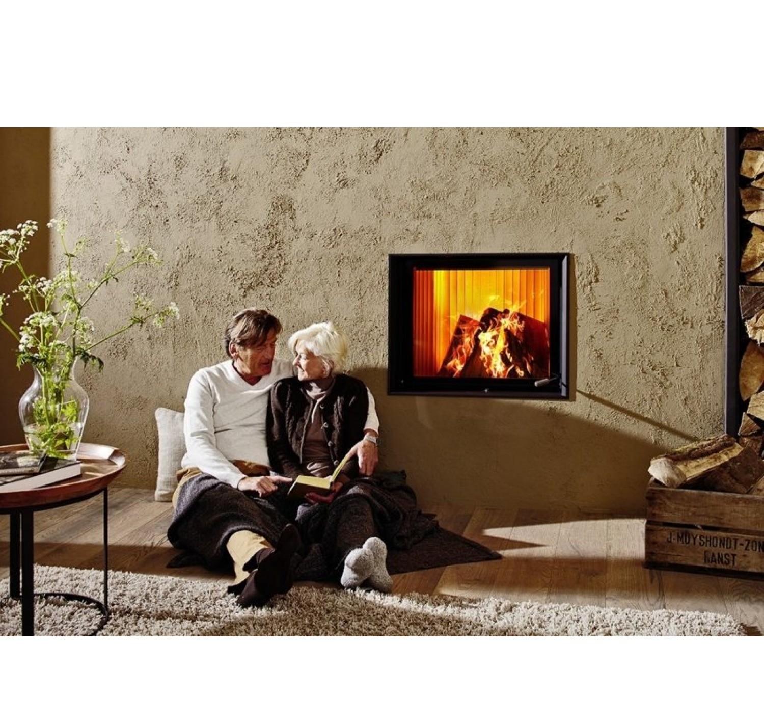 Brunner kompakt-kamin kk 57/67 side-opening, стальной горизонтальный дымосборник, черные рамки