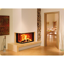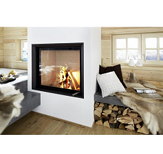 Каминная топка с прямым стеклом. Топочная камера футерована шамотом. Подъёмный механизм двери (система Easy-Lift). Ширина дверки 900 мм. Высота дверки 758 мм. Возможно подключение воздуха извне.