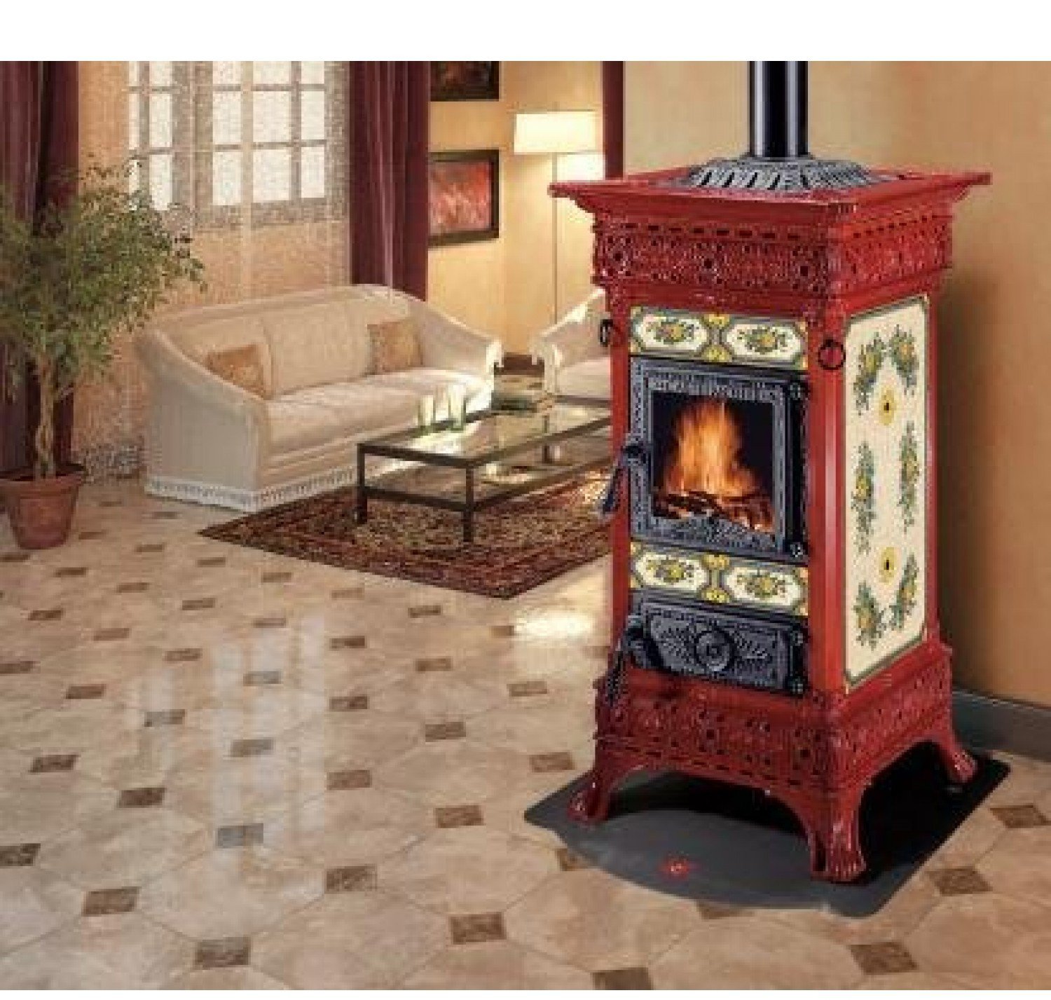 Эта серийная итальянская модель поставляется вместе с закрытой топкой со стеклом. Габариты этой печи из чугуна, позволяют без труда разместить ее в помещении любой площади: в углу стены, в центре гостиной. Огромный выбор расцветок керамической облицовки (плитки) позволяет подобрать именно ту отделку, которая больше всего будет сочетаться с интерьером каминного зала.