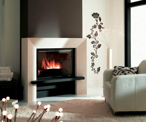 Топка на фото - DESIGN D1000. Ссылки на подходящие к данному камину топки указаны справа под техническими характеристиками. Возможна адаптация под топки любых размеров.