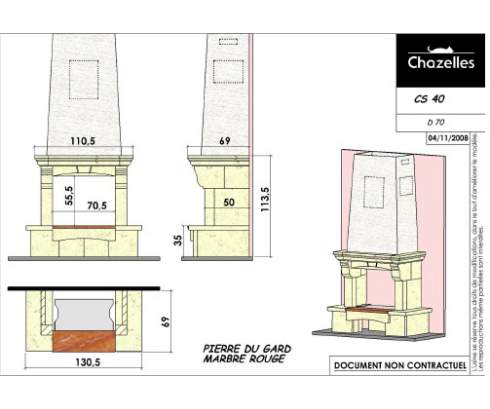 Цена указана за камин в стандартном исполнении (см. чертеж) из указанных материалов без топки.