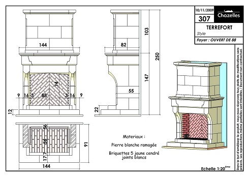 Цена указана за камин в стандартном исполнении (см. чертеж) из указанных материалов с открытым очагом.