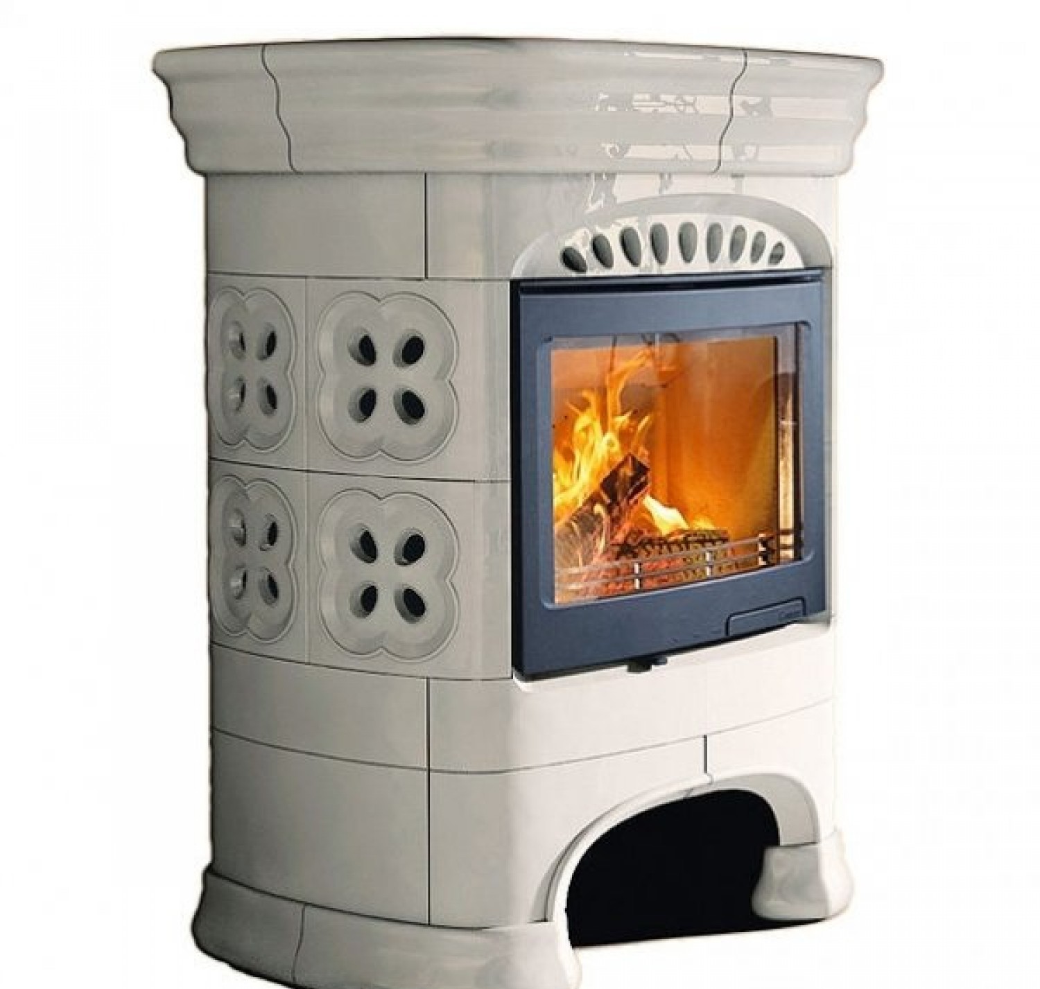 Варианты установки: пристенный (задняя стенка не облицована кафелем) и центральный (кафель по все окружности печи). Для подключения к дымоходам также дополнительно можно приобрести керамические трубы, которые изготовлены в едином решении с камином.
