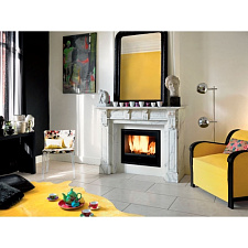 Коэффициент полезного действия, или доля используемой энергии по отношению к полученной при сгорании дров энергии, составляет целых 87%. Печи оборудуются уникальной секцией горячего воздуха с выводом тепла на фронтальную сторону печи, что ускоряет нагрев помещения. Секция горячего воздуха может дополняться вентилятором, который равномерно распределяет тепло по помещениям. В доме с принудительной вентиляцией рекомендуется подключать канал подвода воздуха снаружи напрямую к печи.
