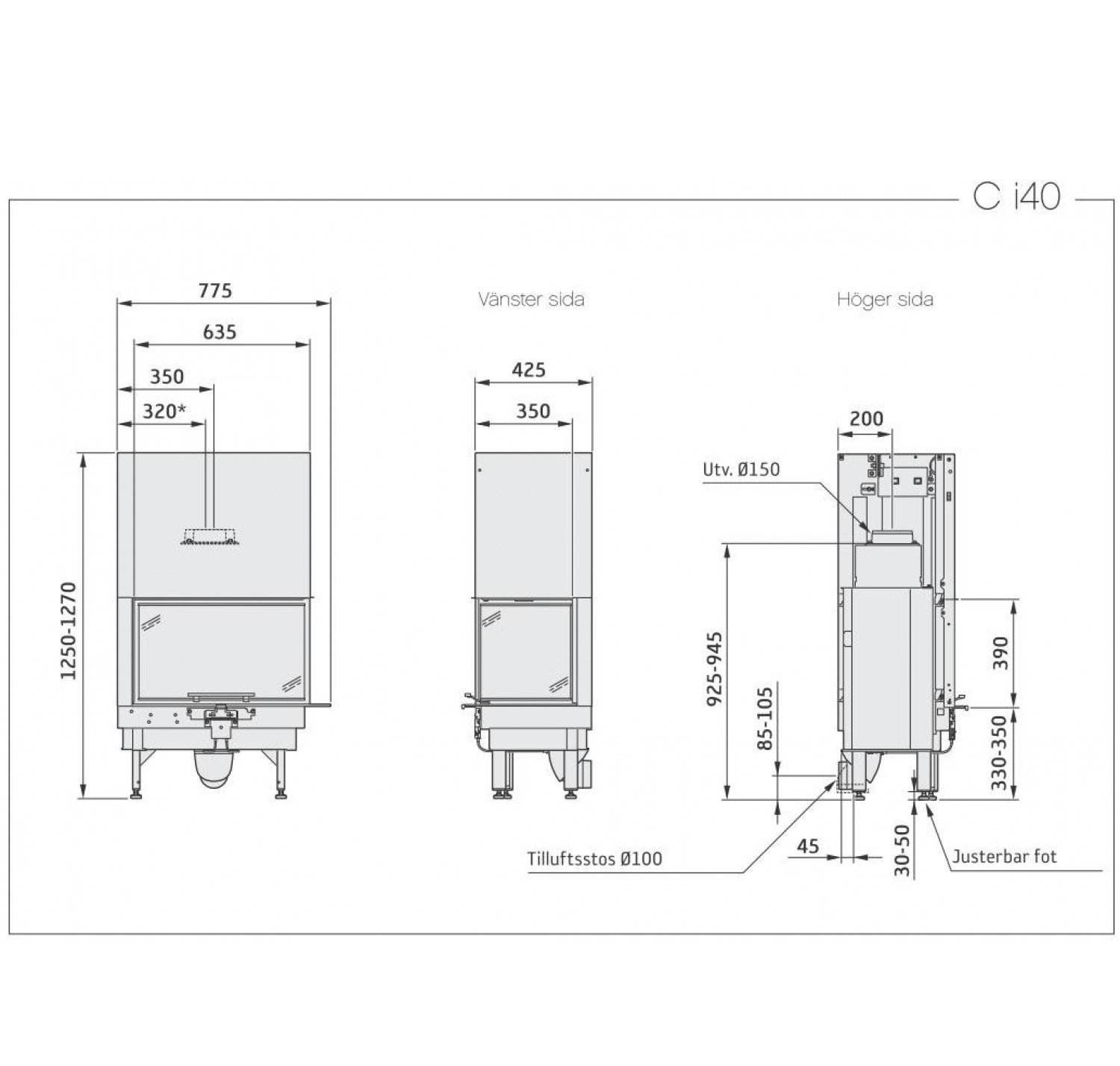Contura i40, стекло слева