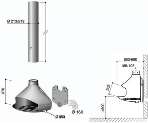 Возможно продление трубы для потолка или заднее подсоединение к стене с помощью колена.
