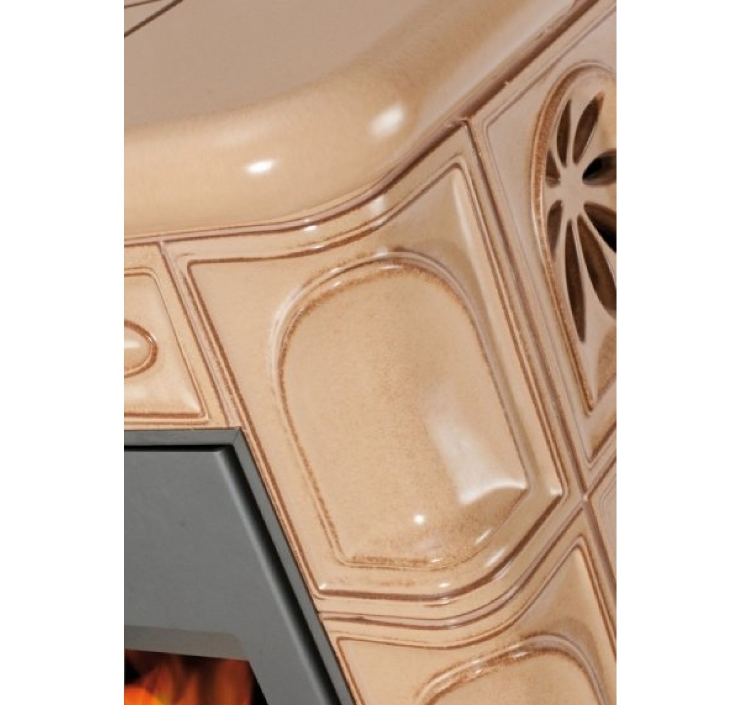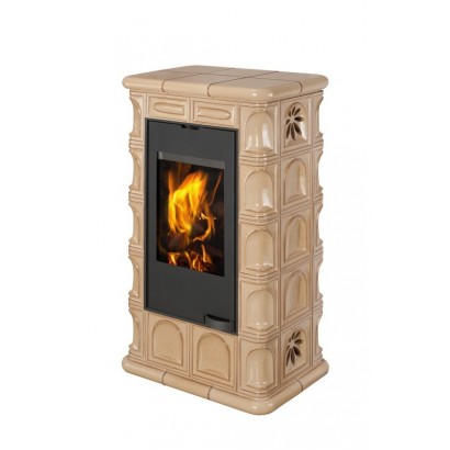 С помощью изразцового декора Ваш дом преобразится до неузнаваемости и станет настоящим произведением искусства. Большие керамические блоки, которые используются в облицовке данной модели также несут функцию теплонакопительных модулей (аккумуляция), которые позволяют излучать тепло в течении нескольких часов после того как огонь погаснет. Данная модель отлично подходит для отопления любого помещения, объем которого не превышает 220 м3. Застеклённая дверца повышает визуальный контакт с пылающим огнем. Керамическая облицовка оригинальна, но вместе с тем, сдержанно элегантна. Аккуратно сделаны и обработаны мельчайшие элементы, углы, плавные линии.
