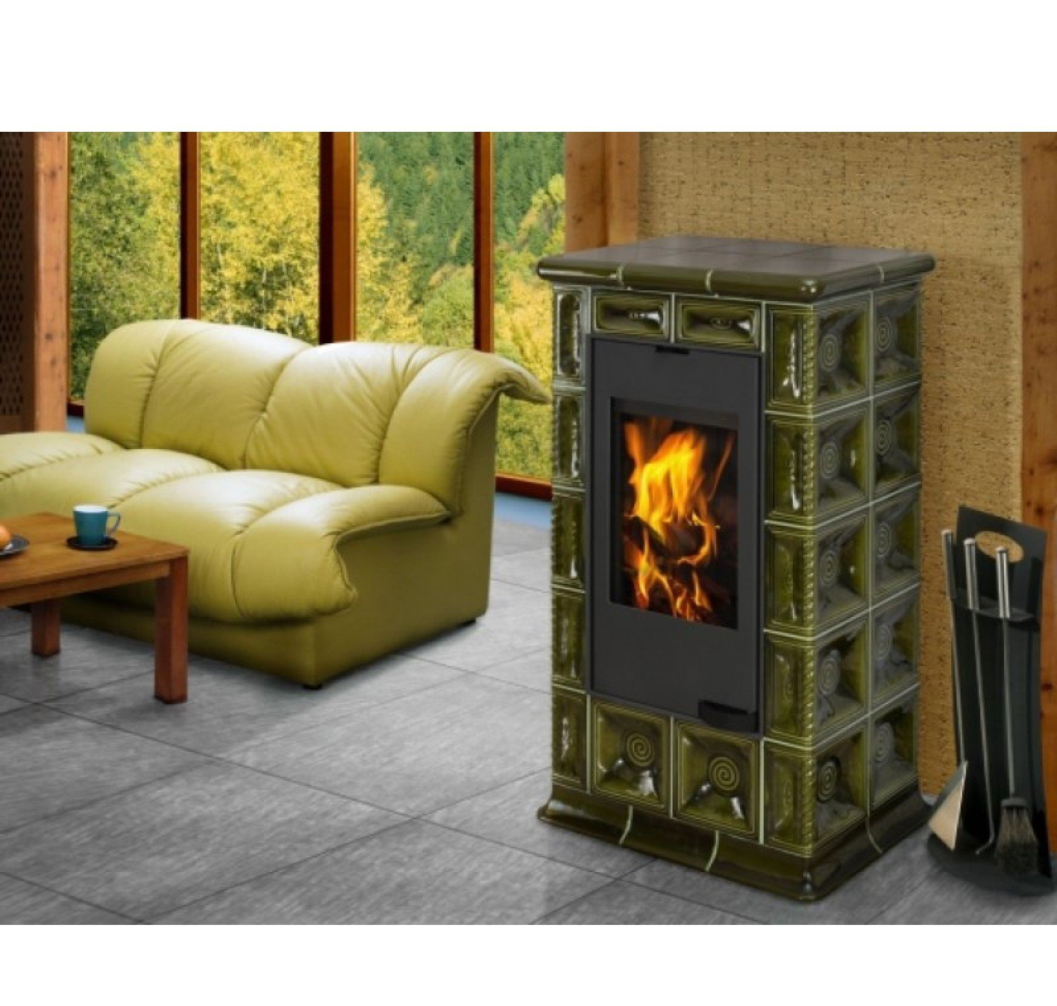 Каминная печь «Alako» на фотографии имеет керамическую облицовку в глазури 65600.