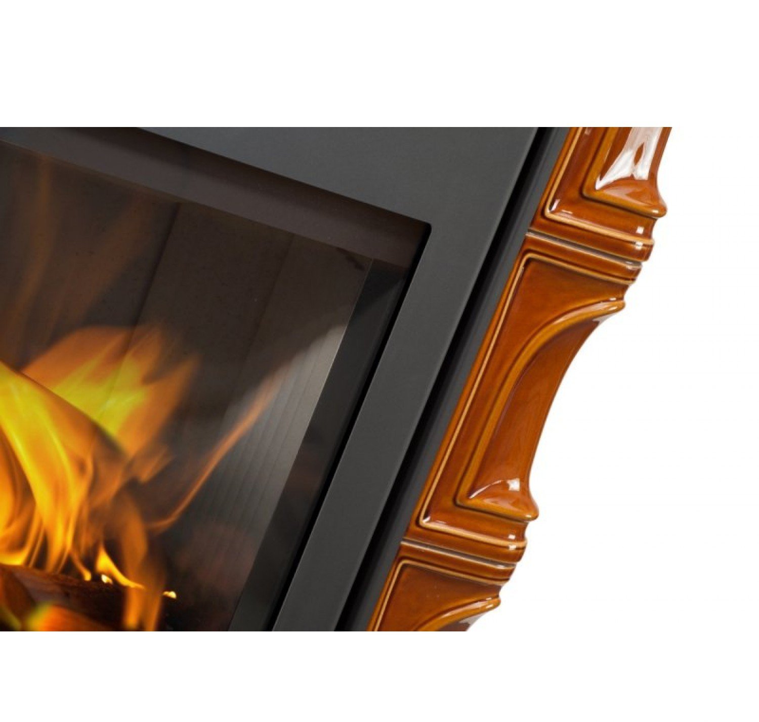 С помощью изразцового декора Ваш дом преобразится до неузнаваемости и станет настоящим произведением искусства. Большие керамические блоки, которые используются в облицовке данной модели также несут функцию теплонакопительных модулей (аккумуляция), которые позволяют излучать тепло в течении нескольких часов после того как огонь погаснет. Данная модель отлично подходит для отопления любого помещения, объем которого не превышает 220 м3. Застеклённая дверца повышает визуальный контакт с пылающим огнем. Керамическая облицовка оригинальна, но вместе с тем, сдержанно элегантна. Аккуратно сделаны и обработаны мельчайшие элементы, углы, плавные линии.