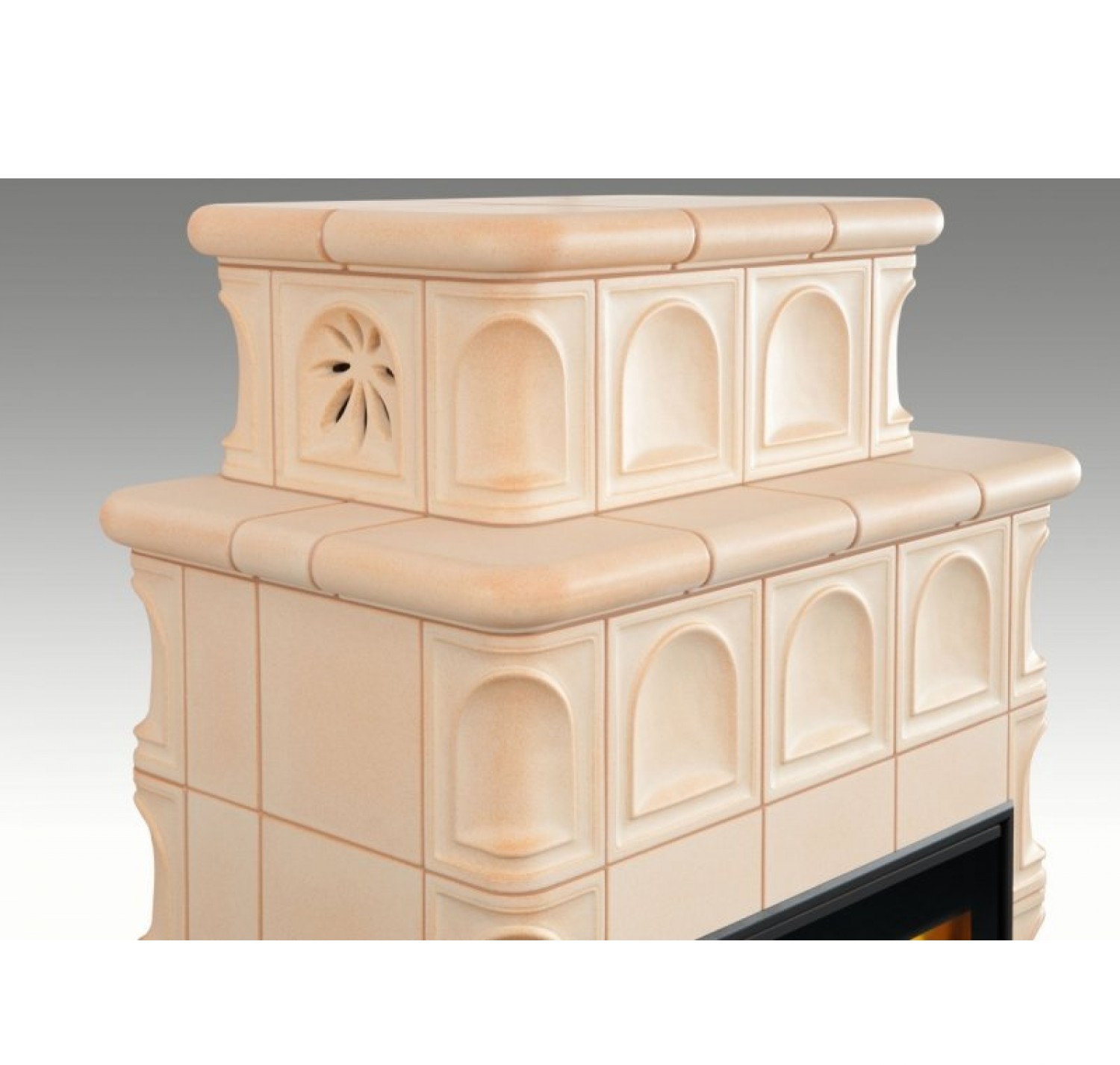 Основу каминной печи составляет мощная топка KV 6.6.2, которая изготовлена из жаростойкой стали, на современном высокотехнологичном европейском оборудовании. Данная модель отлично подходит для отопления любого помещения, объем которого не превышает 220 м3. Модельный ряд HEIN сочетает в себе передовые технологии сгорания, в сочетании с классическим дизайном, что позволяет обеспечить идеальный комфорт отопления вашего дома. Большие керамические блоки, которые используются в облицовке данной модели также несут функцию теплонакопительных модулей (аккумуляция), которые позволяют излучать тепло в течении нескольких часов после того как огонь погаснет. А широкое стекло позволяет насладиться каждой секундой горения.