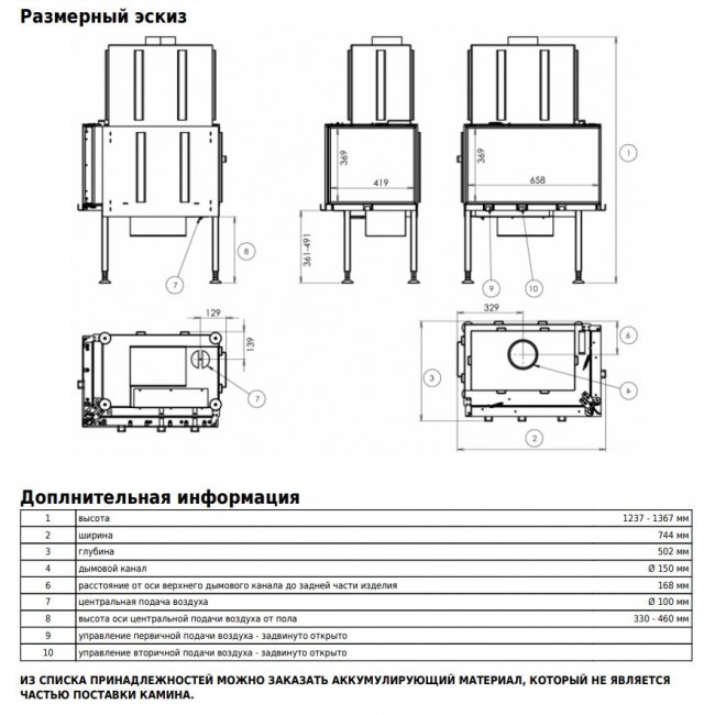 - Топка подключается к воздуховоду диаметром 100 мм.