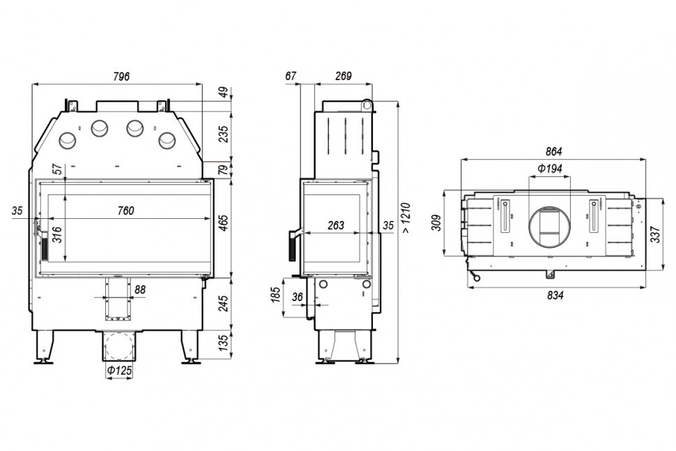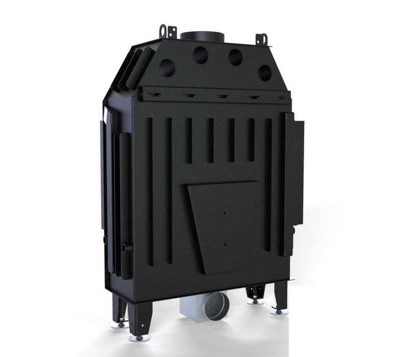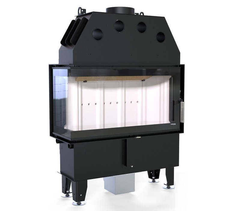 Изготовлена из стали с порошковым покрытием и имеет эффективность нагрева 80,1 %. Устройство с центральной подачей воздуха снаружи и возможностью ее регулировки. Специальная конструкция на трубе для подачи воздуха в топку, дает возможность изменить направление подачи воздуха на боковое. Плотно размещенные радиаторы способствуют передачи больше тепла окружающей среде, а воздуховоды повышают эффективность камина.