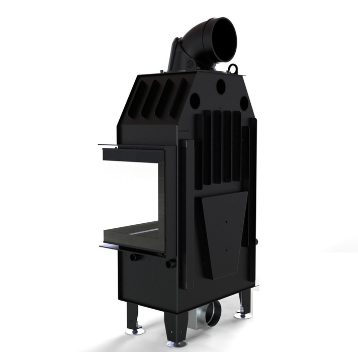 Модель изготовлена из стали с порошковым покрытием. Устройство с центральной подачей воздуха снаружи и возможностью ее регулировки. Специальная конструкция на трубе для подачи воздуха в топку, дает возможность изменить направление подачи воздуха на боковое. Плотно размещенные радиаторы способствуют передачи больше тепла окружающей среде, а воздуховоды повышают эффективность камина.