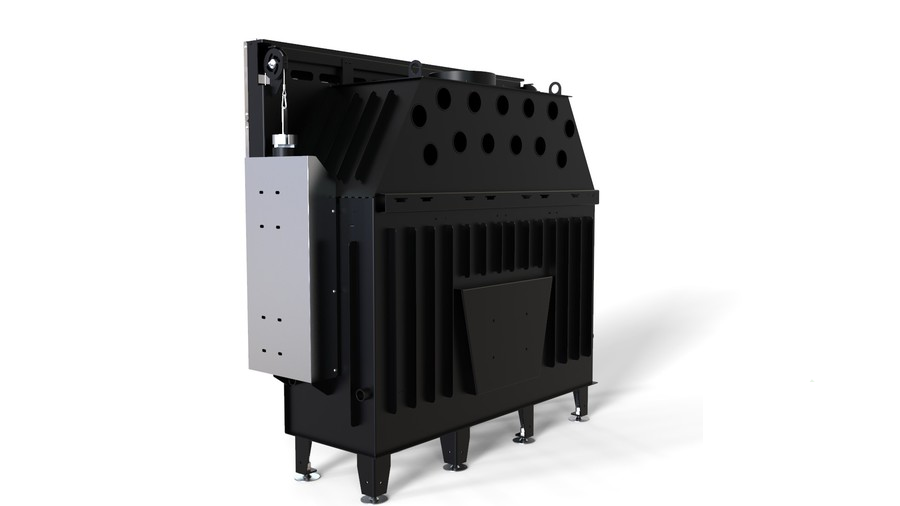 Имеет самый большой размер ширины топочной камеры, это позволяет устанавливать камин в просторных гостиных. Корпус выполнен из котловой стали, кожух гильотины из нержавеющей, регулируемые ножки позволят легко установить топку по уровню. Внутри топочная камера футерована панелями из керамического сплава Керамитон белого цвета, имеет подовое горение, но есть колосниковая решетка, под которой расположен контейнер для сбора пепла. Вторичный дожег дымовых газов и направленные потоки воздуха вдоль стекла, позволяют дольше работать камину на одной закладке дров и любоваться огнем через чистое стекло.