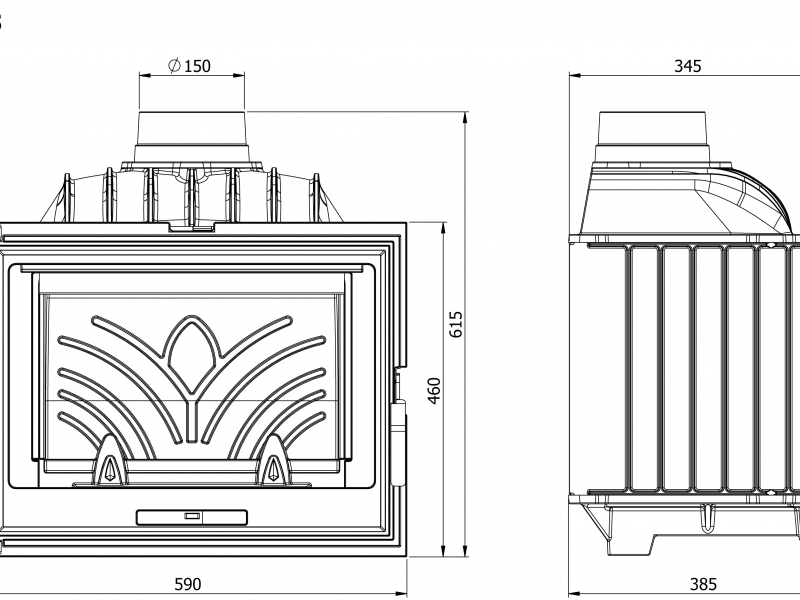 - Диаметр дымохода, (мм) 150