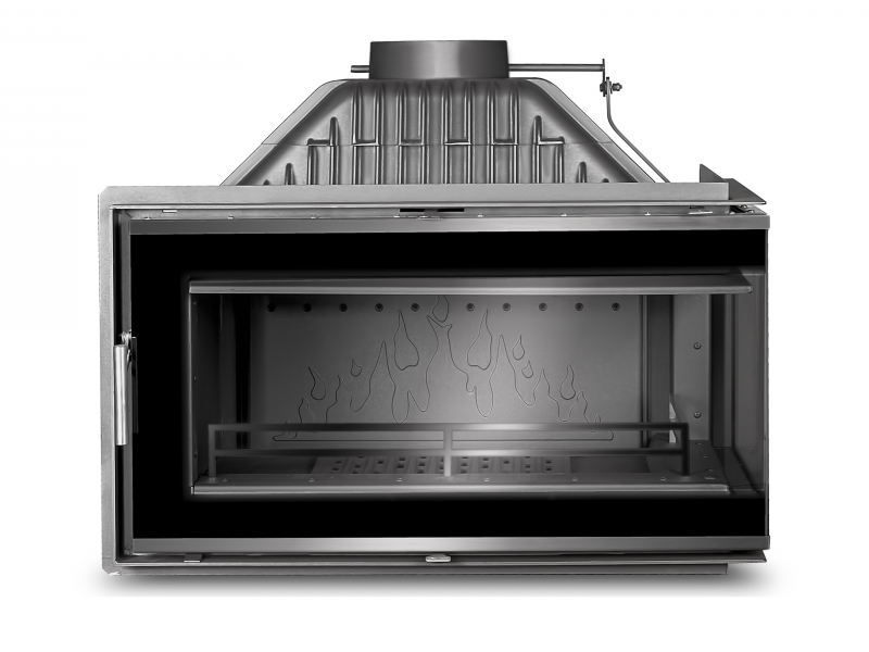 Также особенностью каминных топок KAWMET является наличие встроенной шиберной заслонки с блокиратором дверцы.*