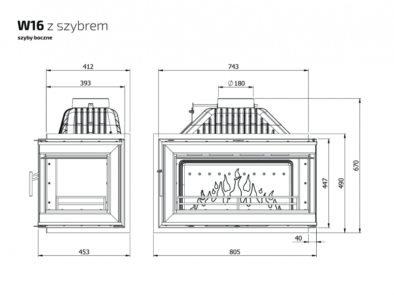 Каминная топка Kaw-Met W16 pb/lb (право- или левосторонняя) с угловым стеклом без рамы (14.7 kW) с отличными характеристиками и великолепной ценой, используется для отопления помещений, а также как предмет интерьера. Выполнена из чугуна класса EN-GJL- 200, представляет собой качественный дизайнерский отопительный прибор.