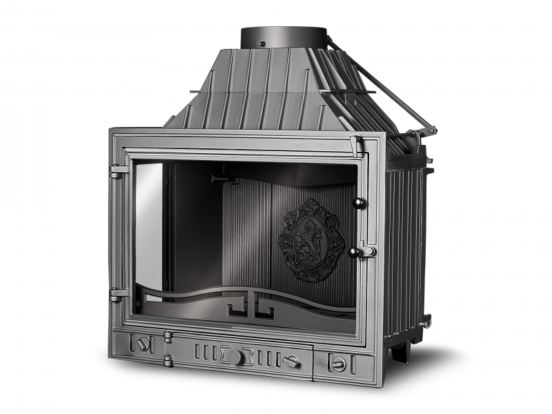 Классическая боковая каминная топкаKaw-Met W3 pb/lb с дополнительным стеклом для наслаждения игрой живого укрощенного огня с нескольких сторон, используется для отопления помещений как качественный дизайнерский отопительный прибор, а также как предмет интерьера. Жаростойкая плита в задней части топки декорирована гербом со львом.