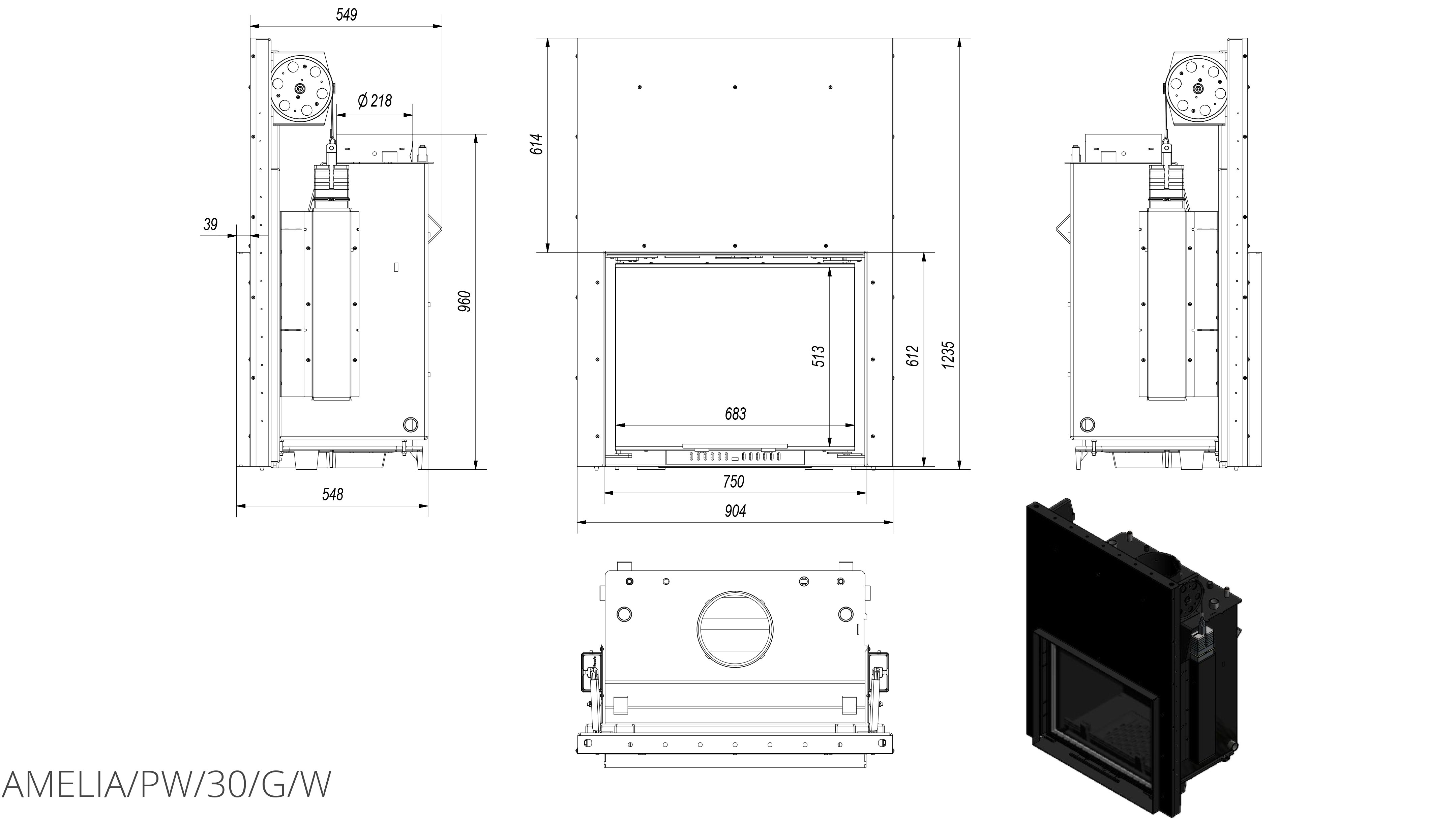 Каминная топка Kratki Amelia/PW/30/G/W