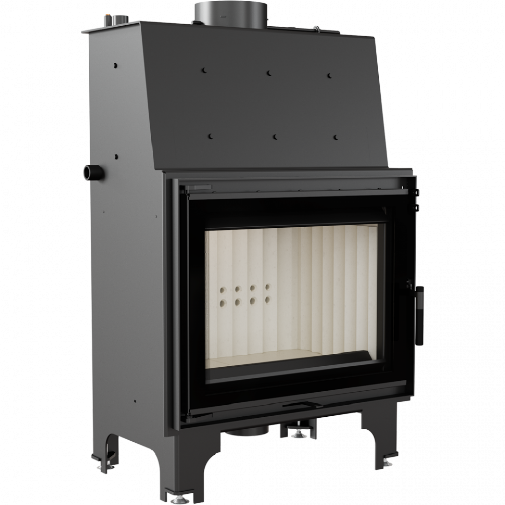 - Топка Aquario - это устройство с водяным контуром, который имеет встроенный корпус из двойных, стальных стен. Пространство между ними заполняется водой, которая получает тепло и передает его радиаторной установке. Камин характеризуется эффективным сжиганием и длительным поддержанием температуры благодаря облицовке камеры сгорания TERMOTEC - материалом, который накапливает тепло, и повышает температуру камеры сгорания. Увеличена поверхность теплообмена в топке возникает в связи с встроенным и высоким переходом из камина в дымоход. Более экологическое сгорание благодаря системе двух дефлекторов, употребление которых продлевает время прохождения дымовых газов.