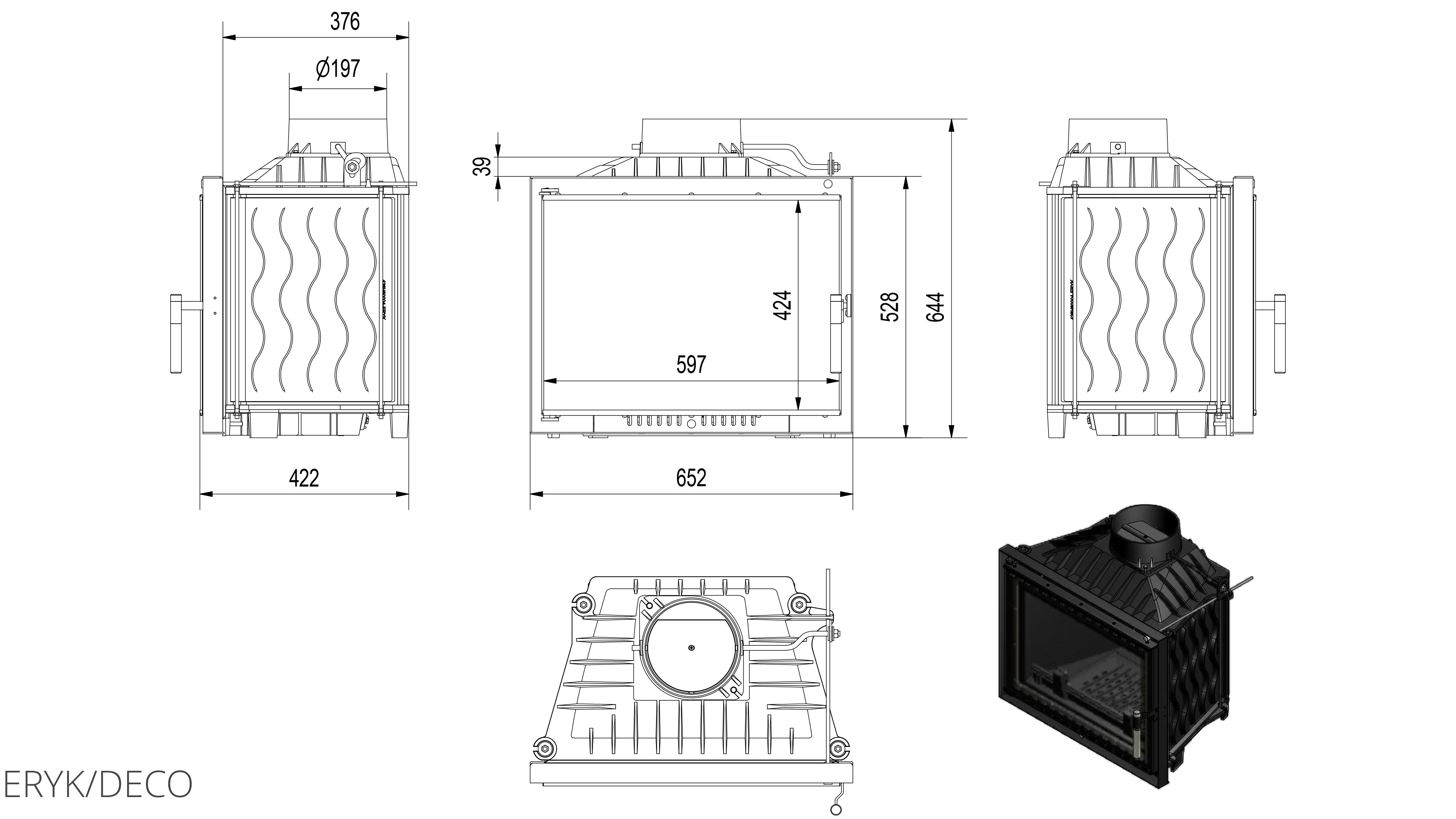 Топка серии Eryk/Deco – новинка в модельном ряду чугунных топок от польского производителя оборудования для дровяных каминов Kratki. Данная модель отличается новой конструкцией дверцы топки, которая создает иллюзию отсутствия рамки. Также стоит отметить более удобную ручку дверцы.