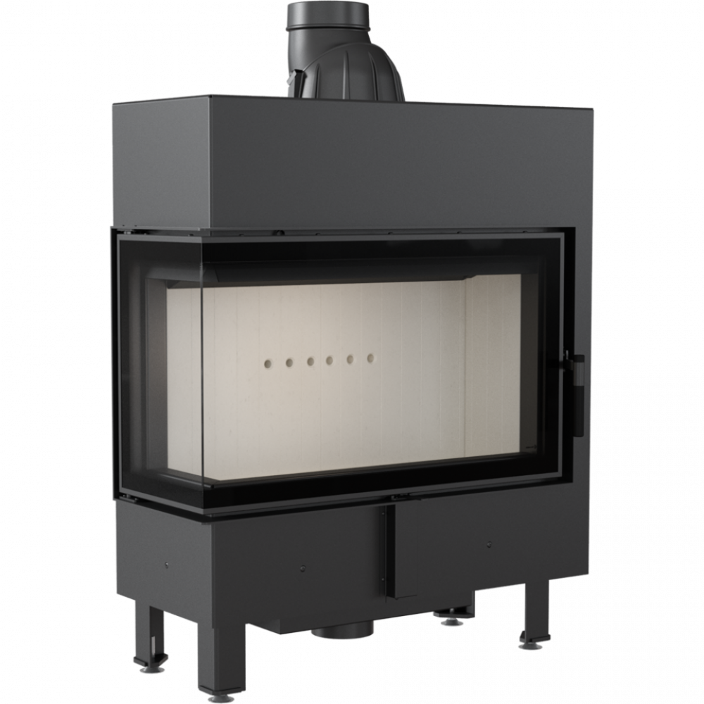 - Модель оснащена подвижным дымоходным отверстием, так что во время монтажа нет необходимости покупать дополнительные колена. Можно легко подобрать угол подключения топки к каминной инсталляции.