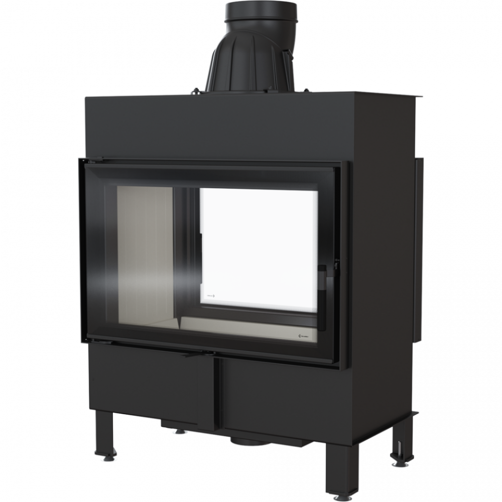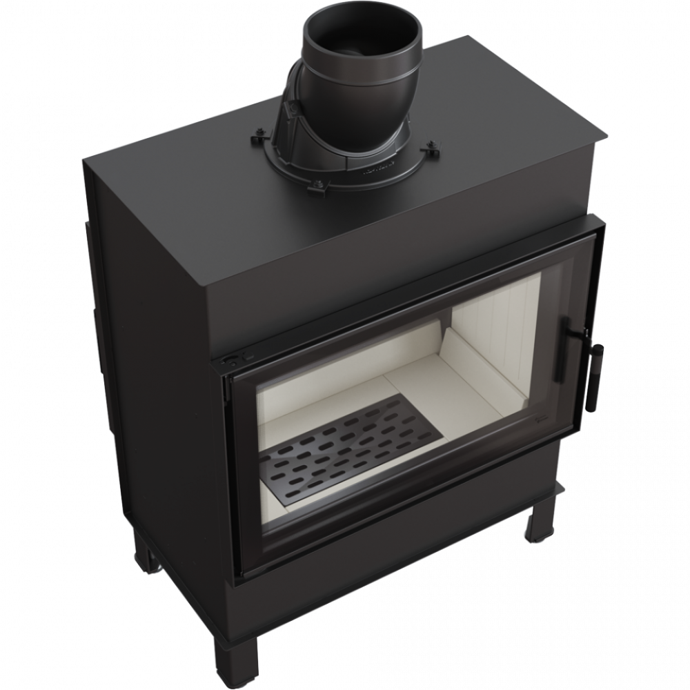 • Модель оснащена подвижным дымоходным отверстием, так что во время монтажа нет необходимости покупать дополнительные колена. Можно легко подобрать угол подключения топки к каминной инсталляции.