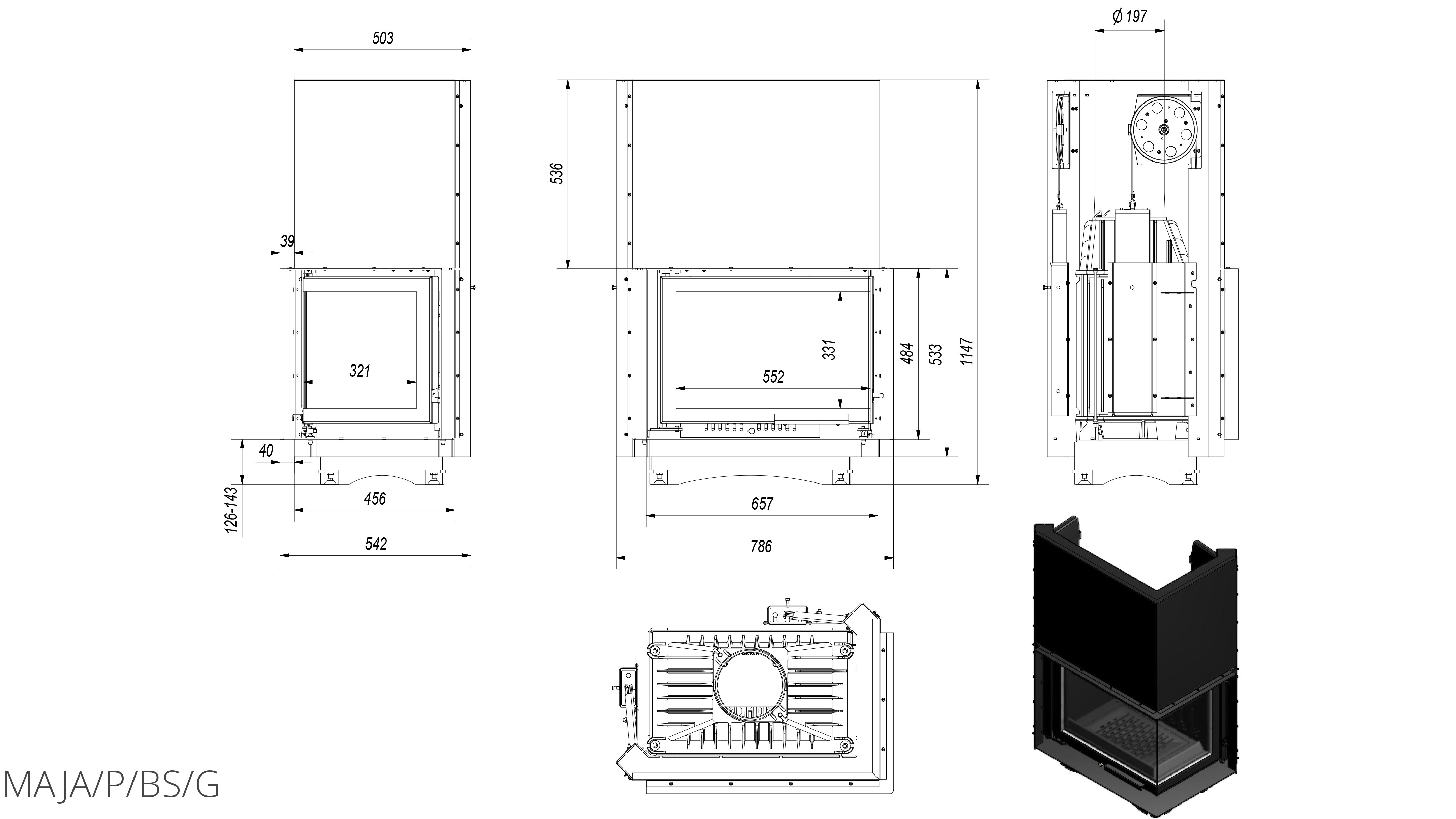 Топка для камина непрерывного сгорания серии Maja/P/BS/G (Г-образное стекло справа, гильотина) – угловая топка с гильотинным механизмом от польской компании Kratki. Представленный вариант исполнения топочной камеры подойдет для углового монтажа – компания Kratki предлагает своим покупателям максимальное разнообразие исполнений вполне традиционной встраиваемой топочной камеры.