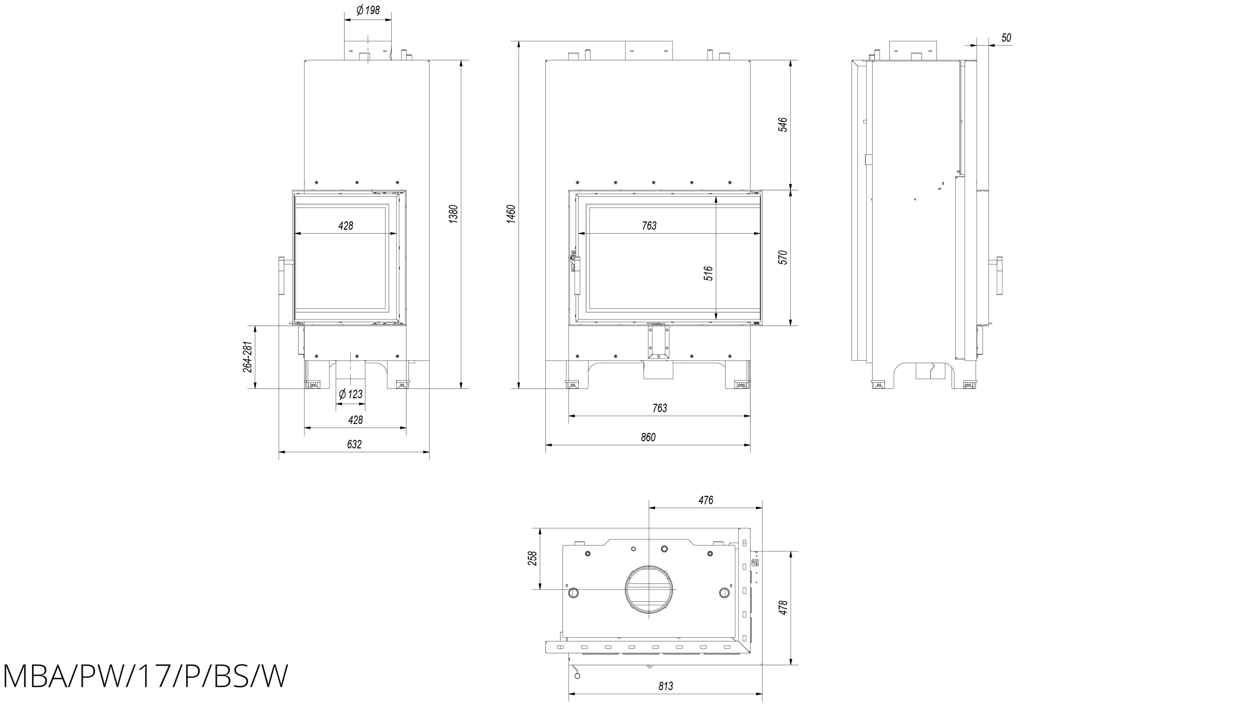 Каминная топка Kratki MBA/PW/17/P/BS/W