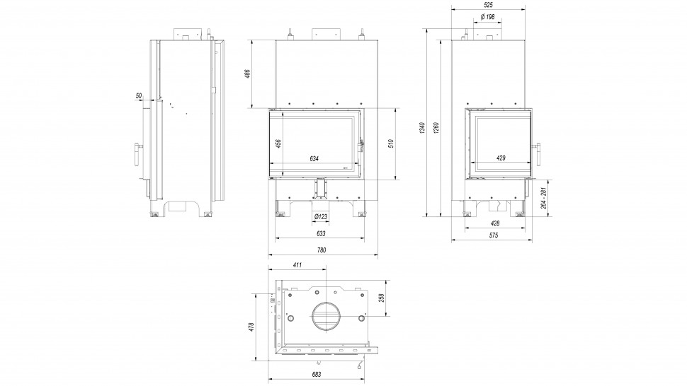 - Удобная скрытая ручка на дверце топки