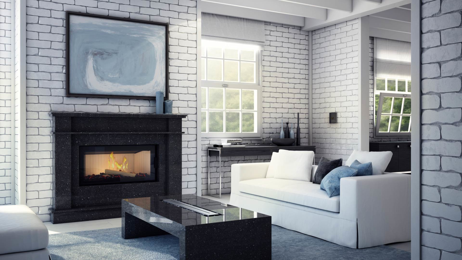 - Декоративная стеклянная панель типа glass, которая выдерживает температуру до 660 °C и предоставляет камину современного и элегантного вида, оптически увеличивает переднюю часть топки.