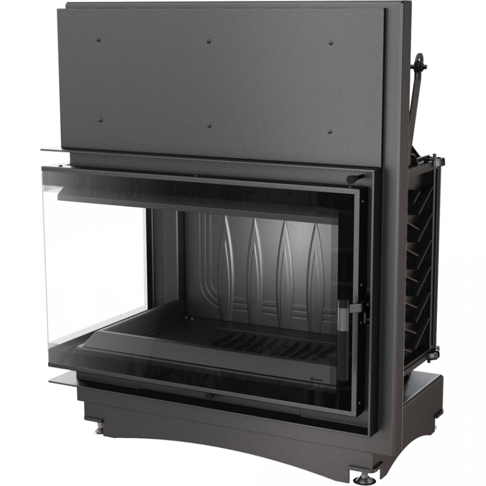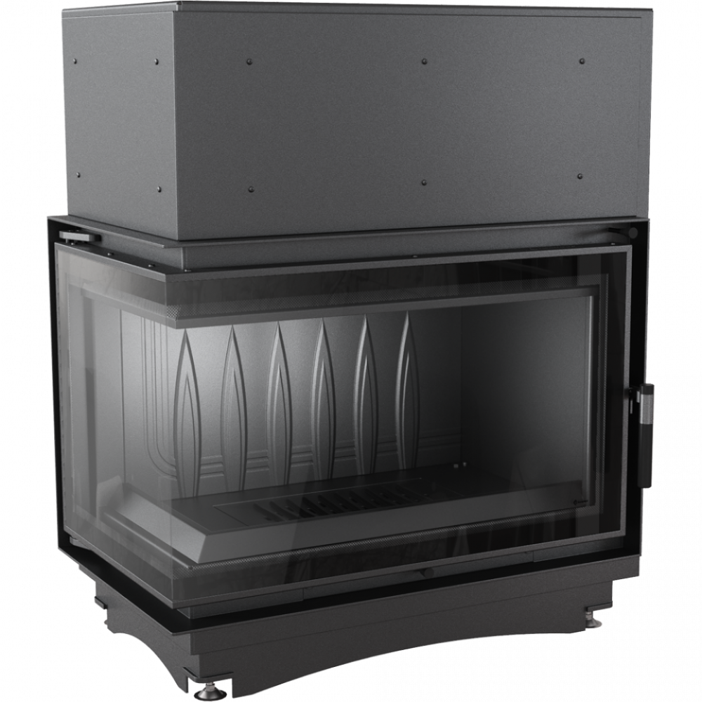 • Каминная топка с двумя стеклянными панелями, сопоставленными друг напротив друга под прямым углом (стеклянные панели соединены без рамы).
