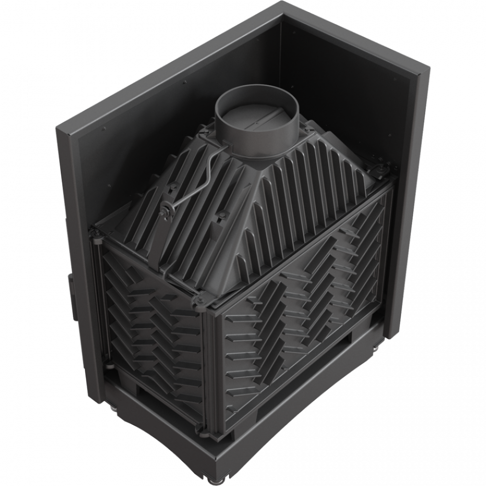 • Увеличена поверхность теплообмена между горячими дымовыми газами и помещением благодаря высокому переходу из камина в дымоход.